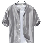 Paaugstiniet savu stilu ar mūsu kokvilnas un lina kreklu, ideālu apģērbu tiem, kas meklē komfortu, neupurējot eleganci. Izgatavots no vieglas un elpojošas maisījuma, šis īso piedurkņu krekls piedāvā minimālistisku dizainu, kas ir ideāli piemērots dažādām situācijām, sākot no ikdienišķas dienas pilsētā līdz relaksētai tikšanās. Modernais griezums un stāvais apkakles (mandarīns) pievieno izsmalcinātības pieskārienu, kamēr auduma dabiskā tekstūra nodrošina nepārspējamu svaiguma sajūtu.
